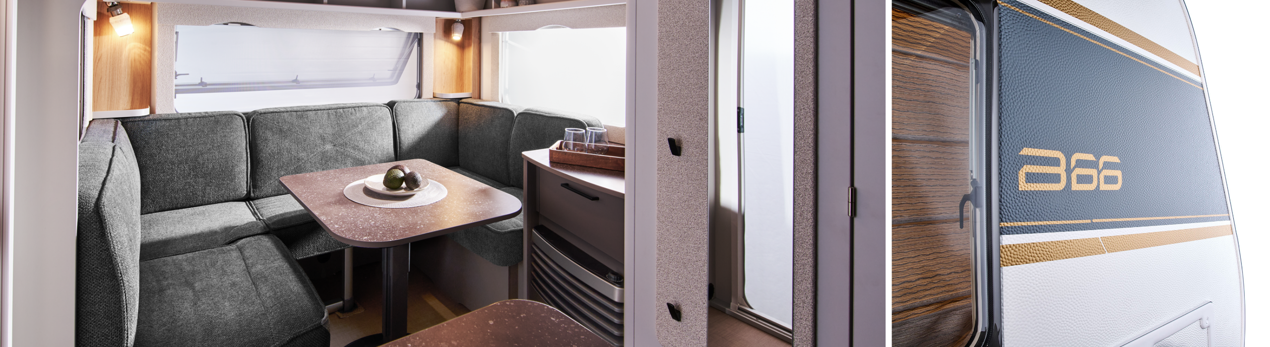 Med opvarmede gulvkonstruktioner, strategisk placerede vinduer og et innovativt belysningssystem kan du nyde en behagelig temperatur og stemning i vognen - både sommer og vinter. Den gennemtænkte komfort gør, at du kan rejse, når du vil, uden at gå på kompromis med velværet.