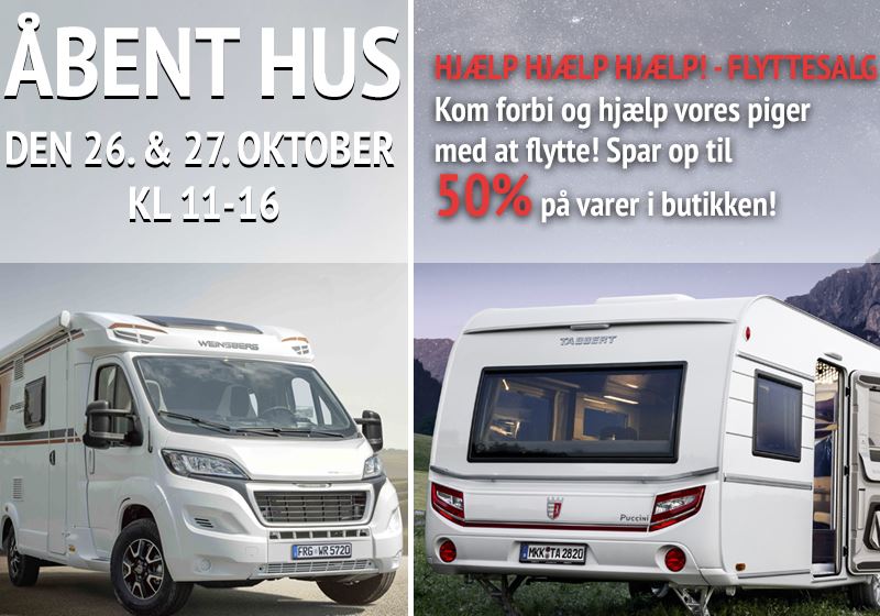 Den 26. & 27. Oktober holder vi åbent hus hos Camping-Specialisten. Oplev 2020 nyhederne og se de rigtig gode tilbud!