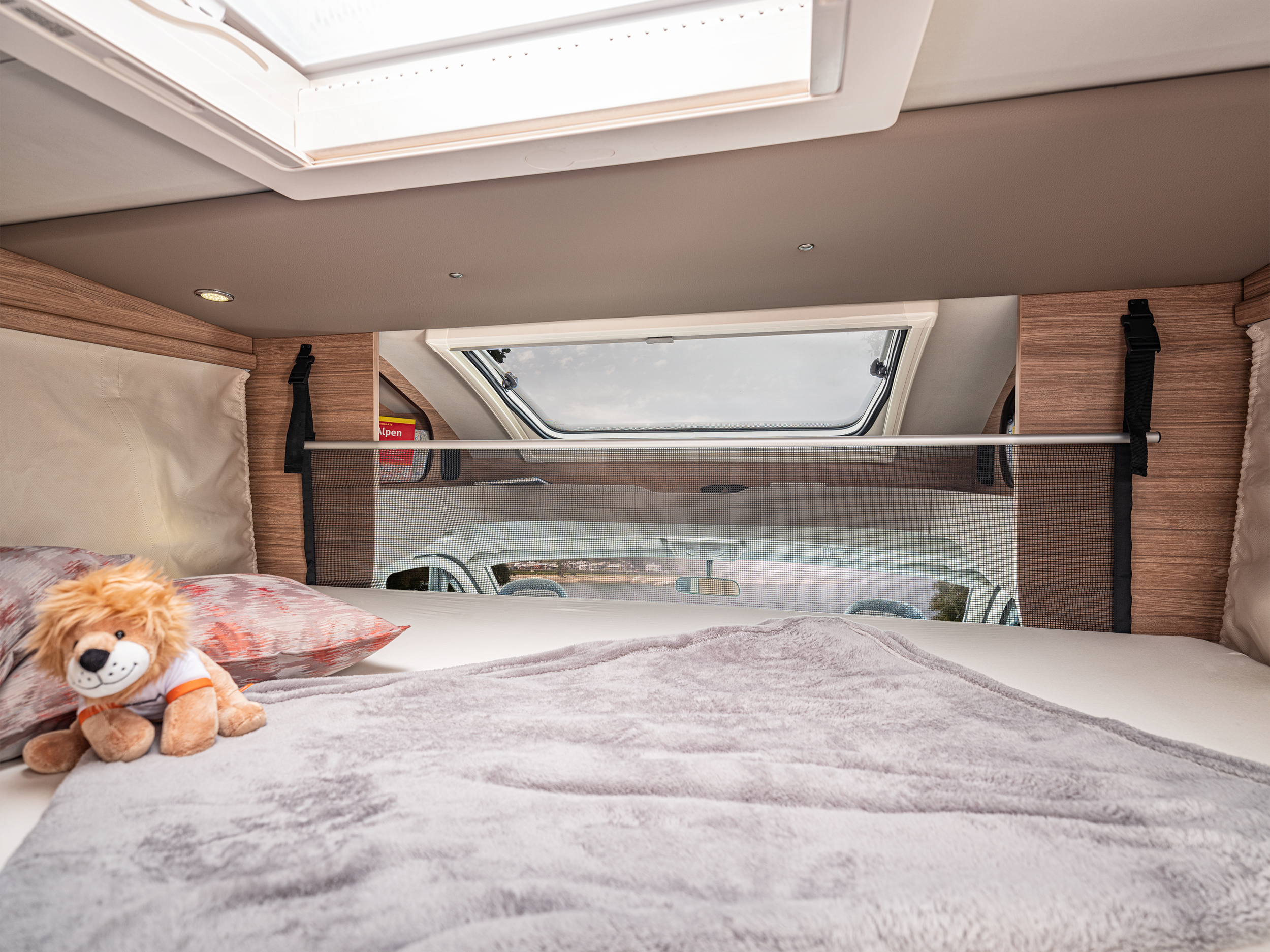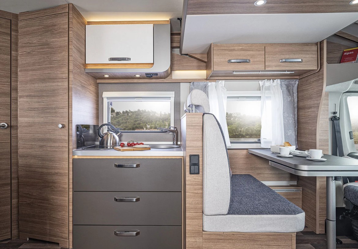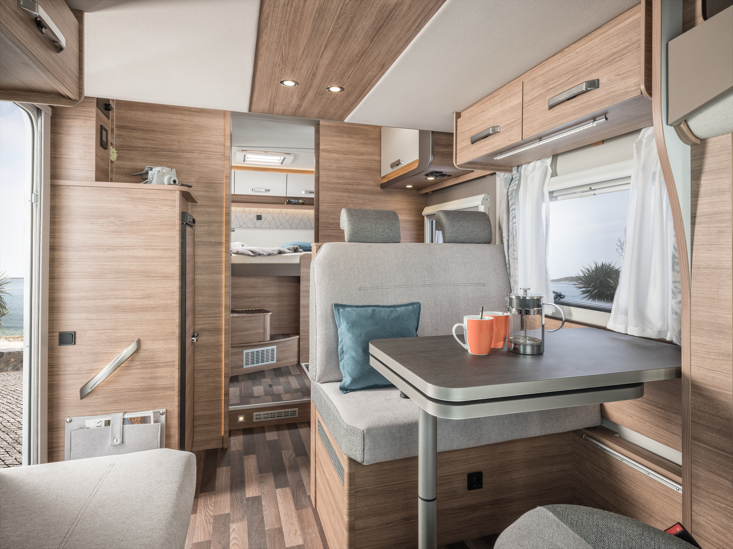 Med fransk dobbeltseng, ekstra ståhøjde og et generøst loftrum under hæve/sænkesengen får du en autocamper, hvor hver centimeter er udnyttet optimalt.