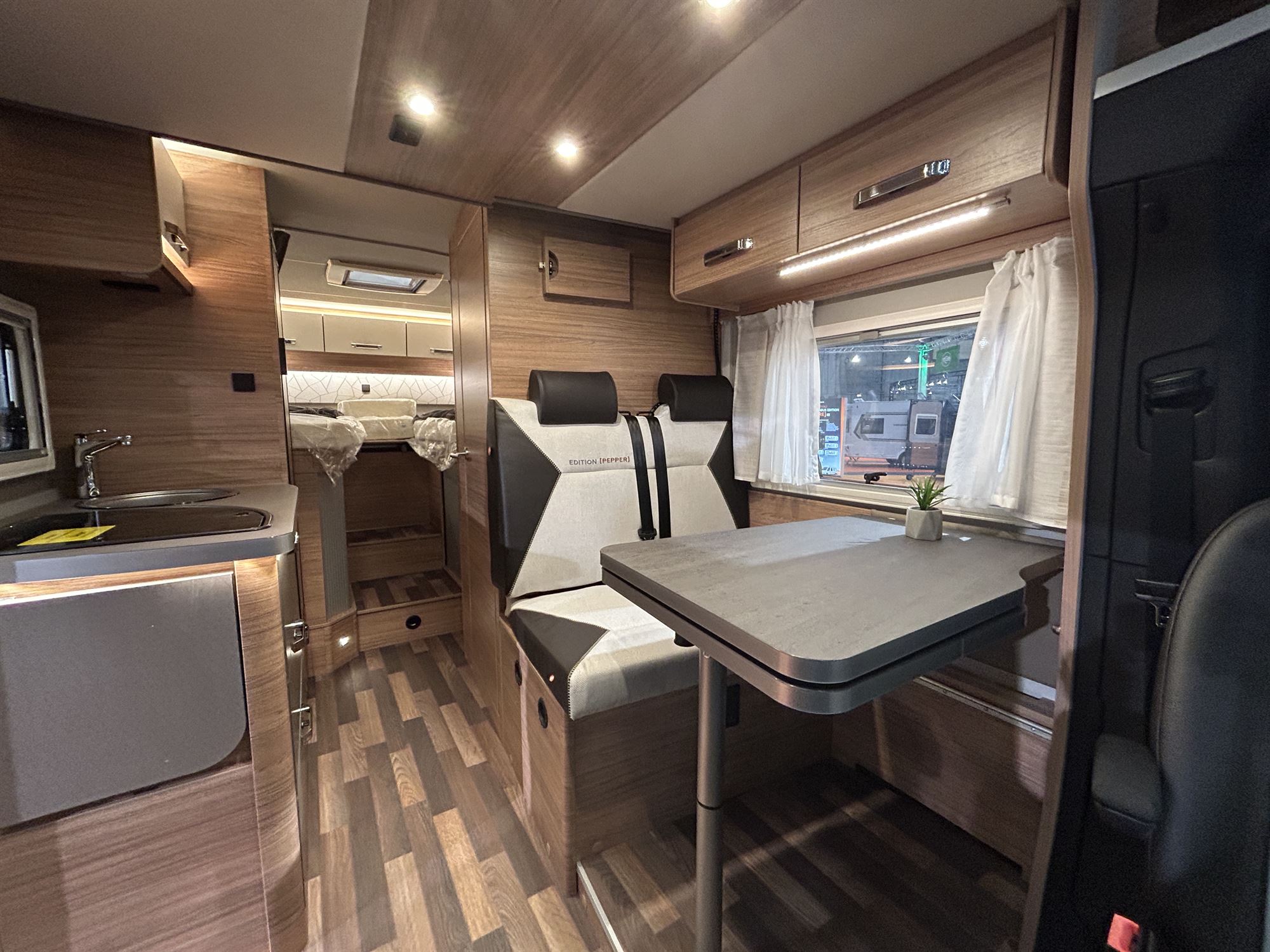 Carado T 447 PRO+ 2024 er den perfekte autocamper til dem, der søger plads og komfort. Med enkeltsenge med lameludtræk over garage, hejseseng og et rummeligt toiletrum med separat bruseniche, er denne model en favorit. Bygget på en Citroën med 140 HK og inkluderer: